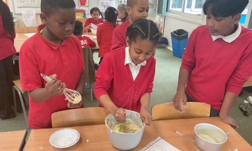 For our DT project this term we looked at Food and Nutrition.  This included investigating healthy and unhealthy foods, kitchen safety and preparing a main course and dessert.  For our main course, we made a vegetable pie and for dessert we made an eggless sponge.  The eggless sponge was a recipe from World War II so it linked to our History topic.