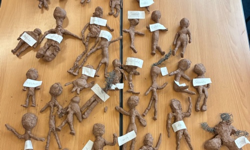 During art lessons with Mrs Wise, we learnt how to create a person using wires and clay. To start with, we had to decide which pose we wanted our model to take. Then we built wire frames by wrapping the wires tightly together and cutting away any extra pieces. Once the skeleton was created, we then covered the frames in layers of clay, which then dried and hardened and our person was complete!