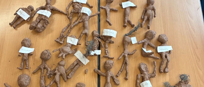 During art lessons with Mrs Wise, we learnt how to create a person using wires and clay.  To start with, we had to decide which pose we wanted our model to take.  Then we built wire frames by wrapping the wires tightly together and cutting away any extra pieces.  Once the skeleton was created, we then covered the frames in layers of clay, which then dried and hardened and our person was complete!